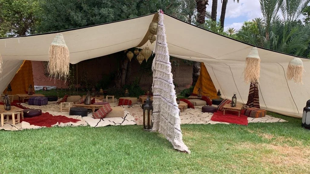 Plongez dans l’atmosphère envoûtante du désert d’Agafay avec nos bivouacs éphémères. Nous créons des campements luxueux et confortables.